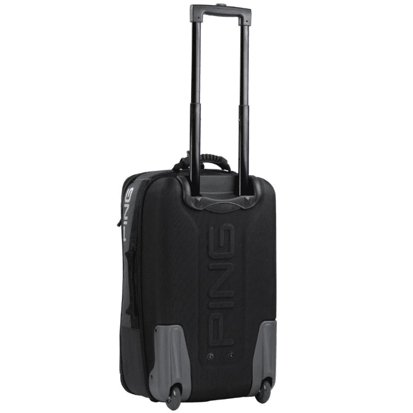 This Ping Rolling Duffle Bag is made of rugged 900D heather grey polyester and has a convenient carry-on size of 21.5″L x 14″W.